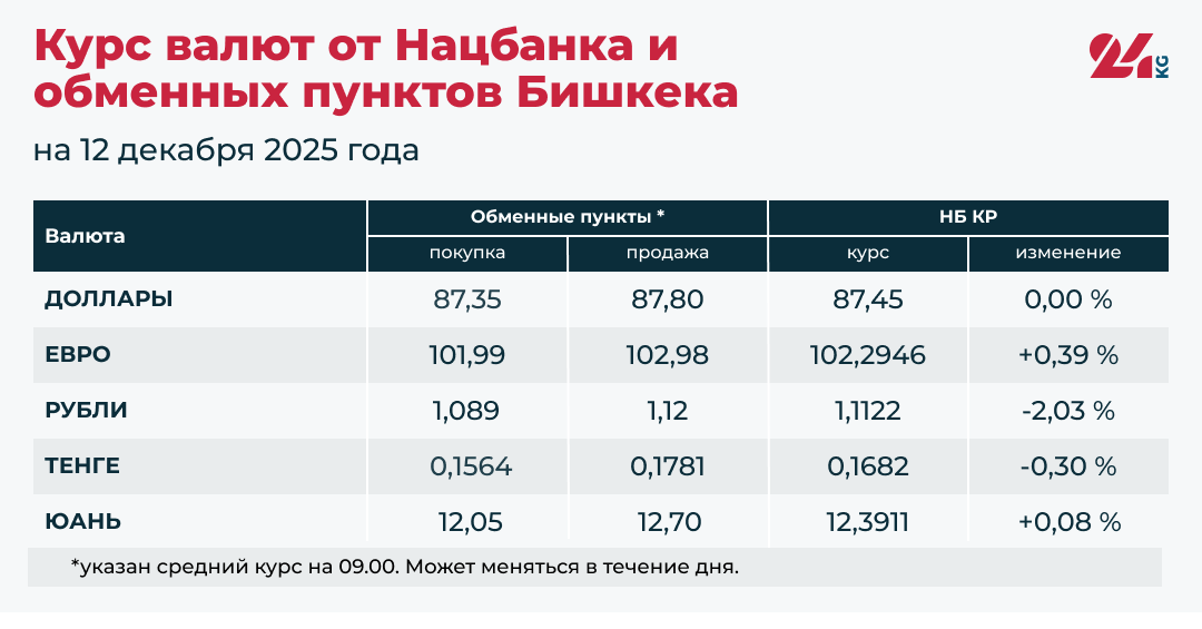 - Официальный курс НБ КР: 87,45 сома (без изменений).