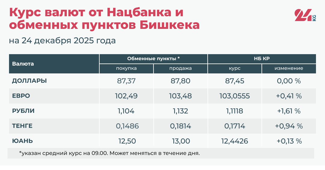 - Официальный курс НБ КР: 87,45 сома (без изменений).