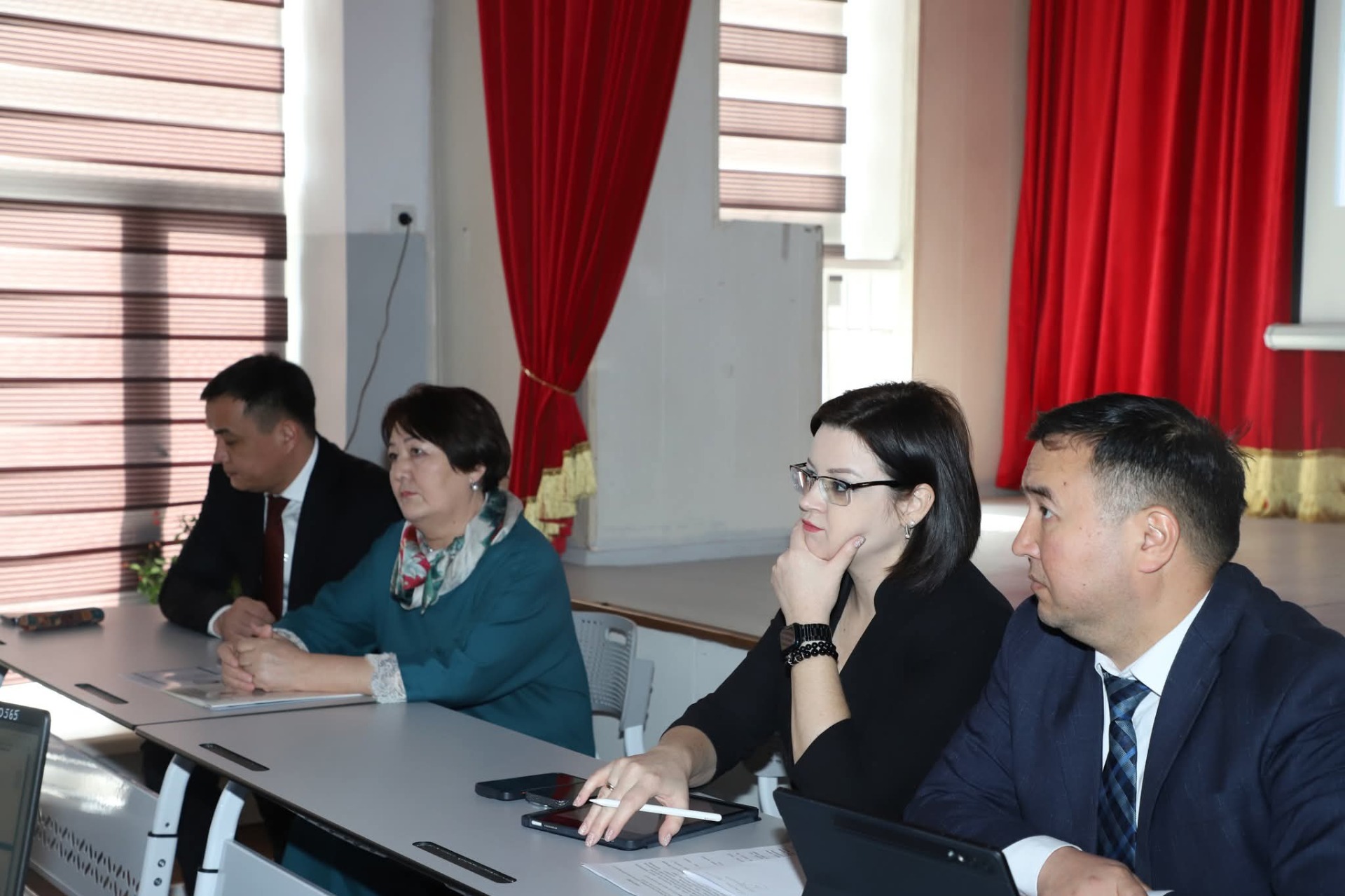 Министр просвещения Догдуркул Кендирбаева, первый заместитель министра Мухтарбек Баймурзаев, заместитель министра строительства, архитектуры и жилищно-коммунального хозяйства Бакай Турдугулов, а также заместитель мэра Бишкека по социальным вопросам Виктория Мозгачева встретились с родителями учащихся специальной общеобразовательной школы-интерната для слепых и слабовидящих детей.