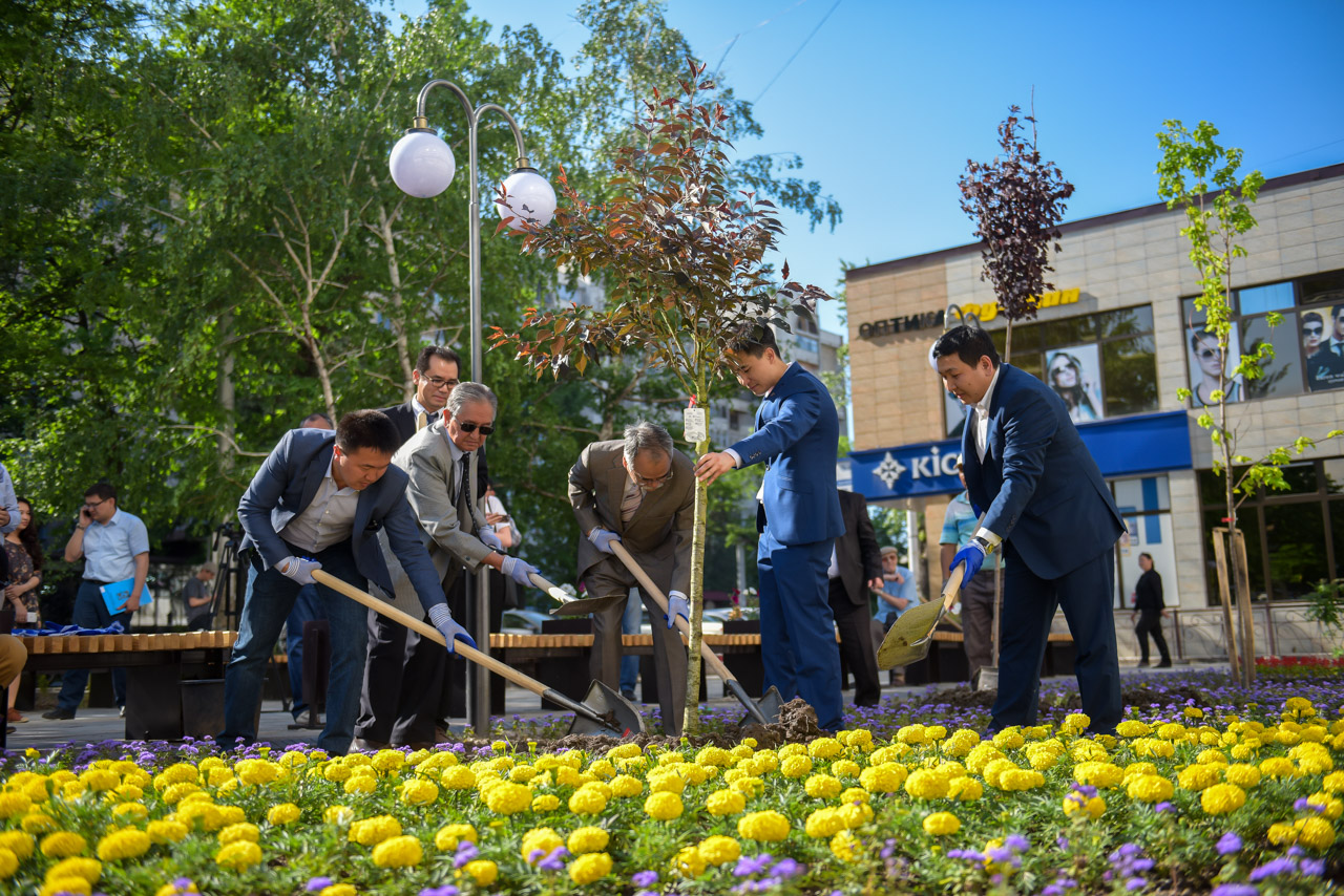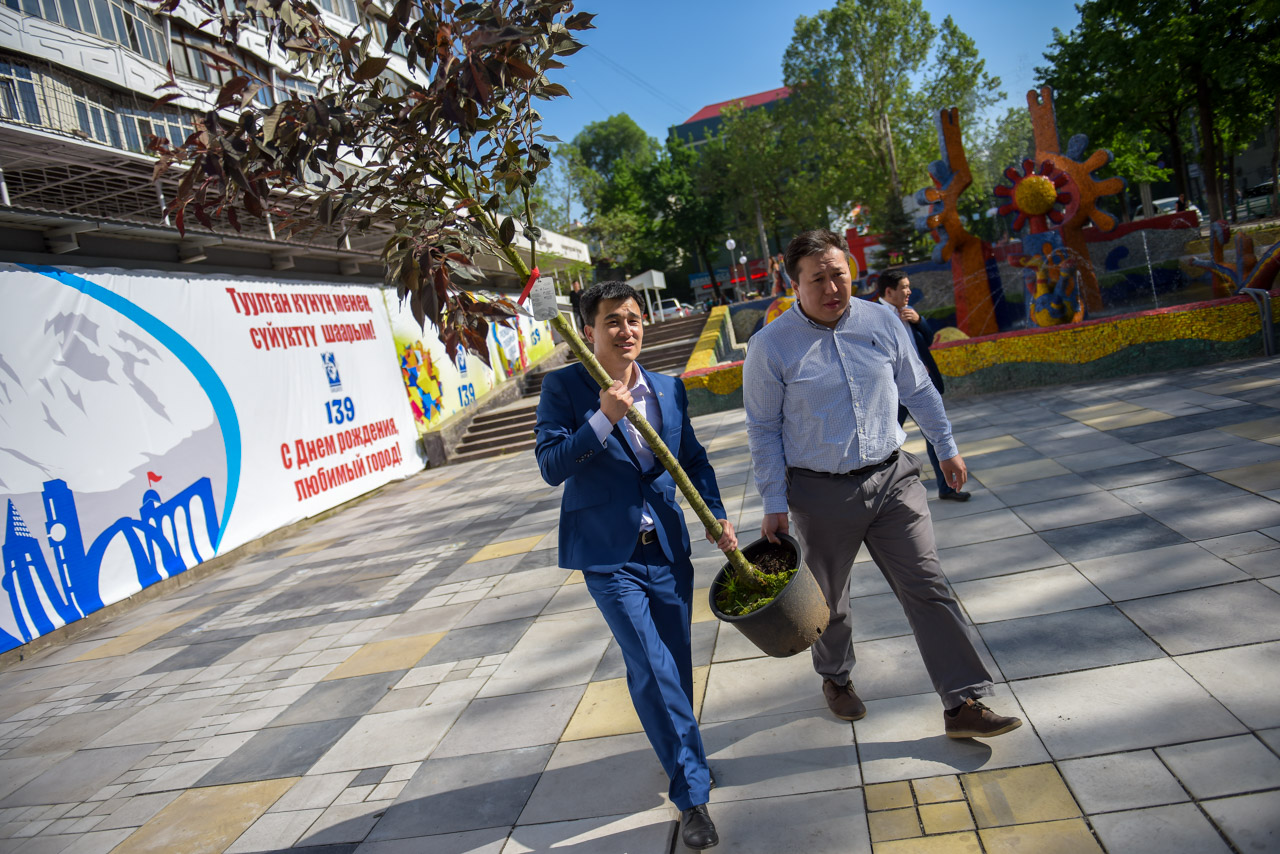 В церемонии посадки приняли участие горожане, вице-мэр Бишкека Эркинбек Исаков, глава Свердловской районной администрации Самарбек Болотбеков, сотрудники структурных подразделений мэрии, Чрезвычайный и Полномочный Посол Японии в КР Ямамура Есихиро, глава представительства JICA в КР Кикучи Казухико.